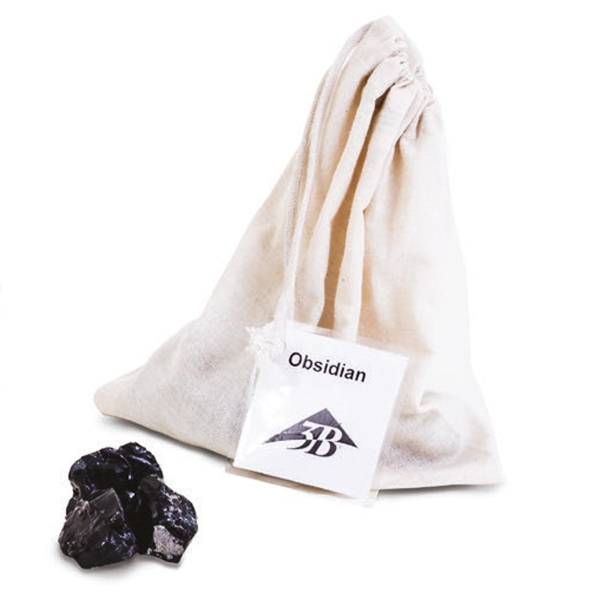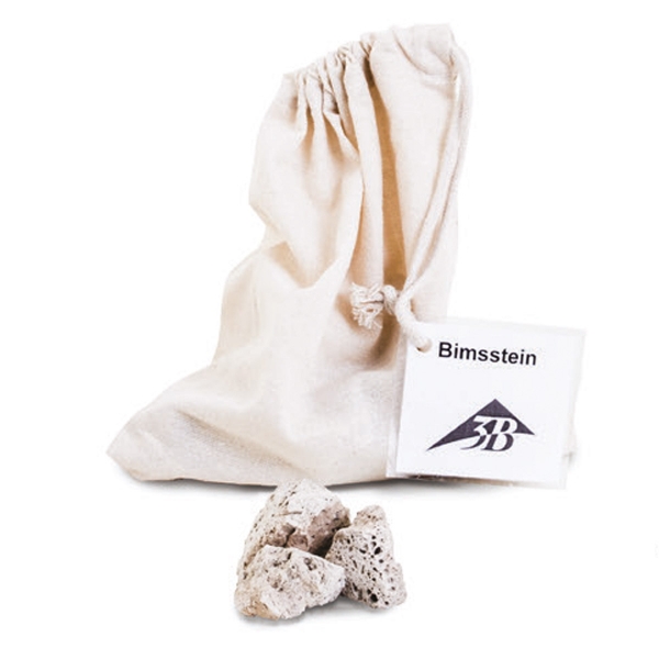 Satz mit drei Vulkaniten bestehend aus drei Säckchen zu je zehn walnussgroßen Einzelsteinen: Lavagestein, Obsidian und Bims.