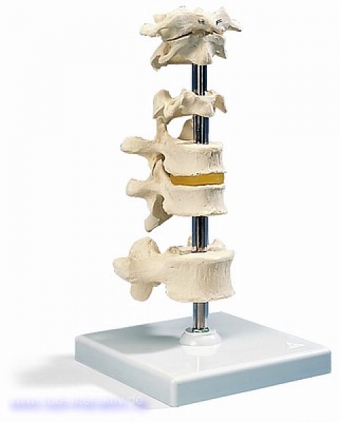 Bestehend aus Atlas, Axis, einem weiteren Halswirbel, zwei Brustwirbeln mit Bandscheibe und einem Lendenwirbel.