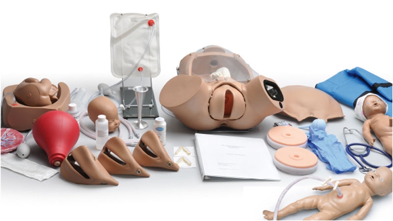 Das Modell beinhaltet einen Torso, ein Geburtsbaby und eine Neugeborenenpuppe.