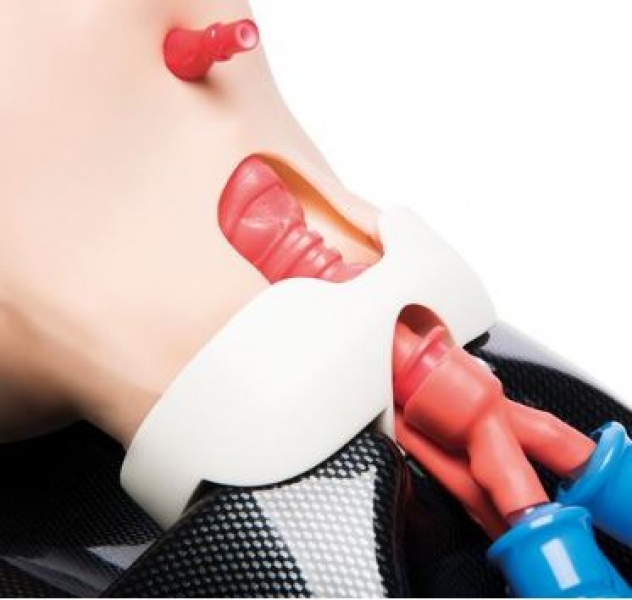 • Optionales subkutanes Fettgewebe, mit dem höhere Schwierigkeitsgrade bei der Tracheostomie und der Krikothyreotomie geübt werden können