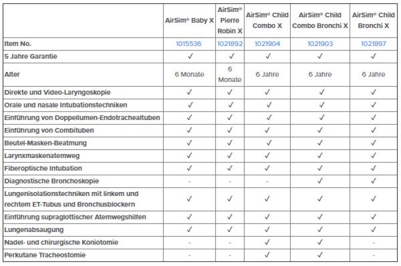 • Optional sind für das fortgeschrittene Training schwierige Atemwege erhältlich