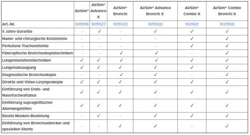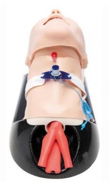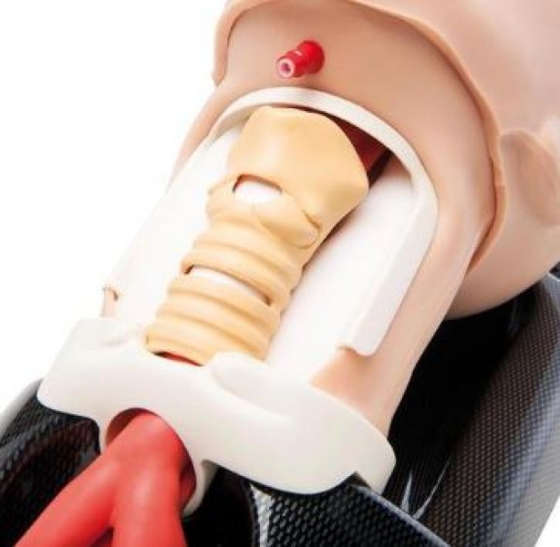 Der AirSim Combo X ist der „Alles-in-einem“-Trainer für das Atemwegsmanagement. Dieses Modell bietet eine Komplettlösung ohne die Notwendigkeit, weitere Trainer für einzelne Aufgaben dazu zu kaufen. Das Modell verfügt über AirSim X Atemwege und Nasengang, anatomisch korrekt dargestellte Ringknorpel, Kehlkopfknorpel und ertastbare Trachealringe, sowie bis in die vierte Generation anatomisch detailgetreu ausgestaltete Bronchien.