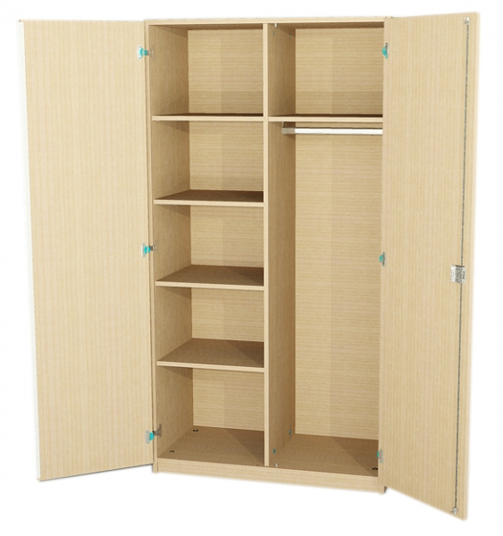 Akten / Garderobenschrank, BxHxT 100x190x50 cm 2 Türen, abschließbar, Dreholive, Mittelwand, Links: 4 verstellbare Einlegeböden Rechts: 1 Hutboden mit Garderobenstange