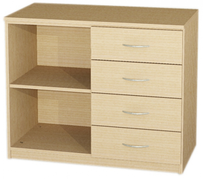Anrichte, mit Abdeckplatte BxHxT 90x82,5x50 cm links: offen, 1 verstellbarer Einlegeboden rechts: 4 Schubkästen mit SoftClose Auszügen, Segmentbogengriffe ( RM 128 mm ) verchromt matt