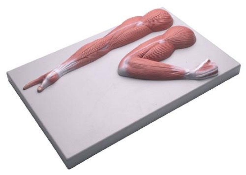 Dieses Modell zeigt die Armmuskulatur sowohl im entspannten als auch im kontrahierten Zustand.