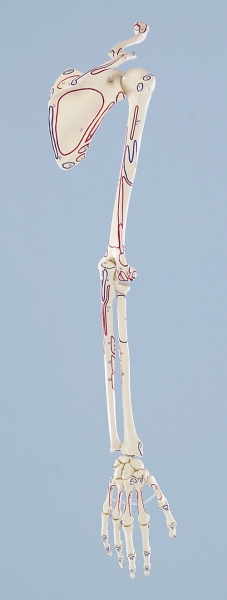 Armskelett mit Schultergürtel, mit Muskelmarkierung