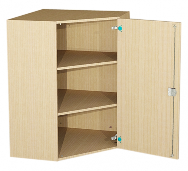 Aufsatz-Eckschrank, BxHxT 90x110x90 cm 1 Tür, abschließbar, Dreholive, 2 Diagonal-Einlegeböden Anstellseite: 50 cm