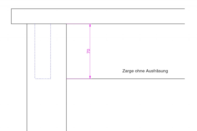 Ausfräsung für die Tischzarge: Höhe der Auskehlung ca. 20mm.