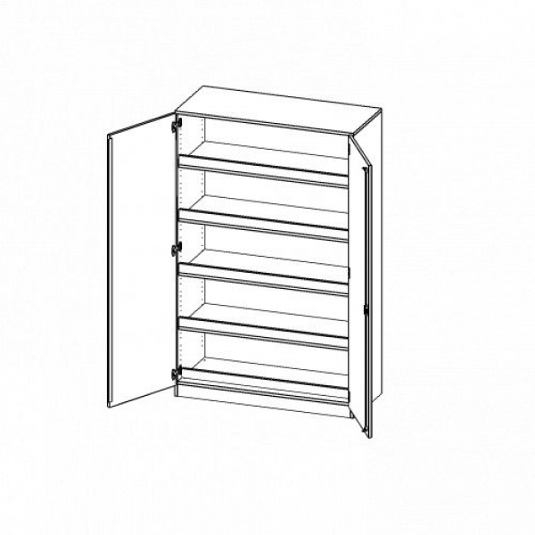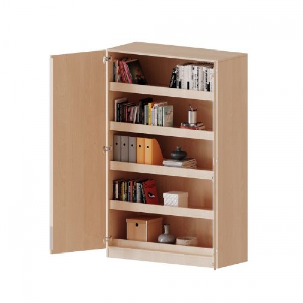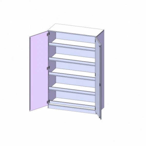 Sportschrank BxHxT 90x190x50 cm mit 4 Fachböden mit Aufkantung und 2 Modulboxen mit je 2 flachen und 2 hohen Kunststoffschüben