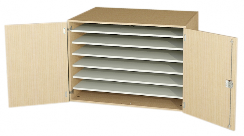 Bilderschrank als Aufsatzschrank, BxHxT 111 x 79 x 77 cm 2 Türen, abschließbar, frontbündiges Zylinderschloss, 6 Einlegeboden ohne Rollenführung Aufbewahrung von Dokumenten bis Format 100 x 70 cm
