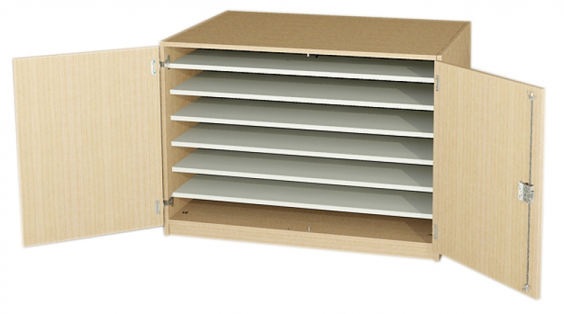 Bilderschrank als Unterschrank, BxHxT 111 x 79 x 77 cm 2 Türen, abschließbar, frontbündiges Zylinderschloss, 6 Einlegeböden ohne Auszug Aufbewahrung von Dokumenten bis Format 100 x 70 cm