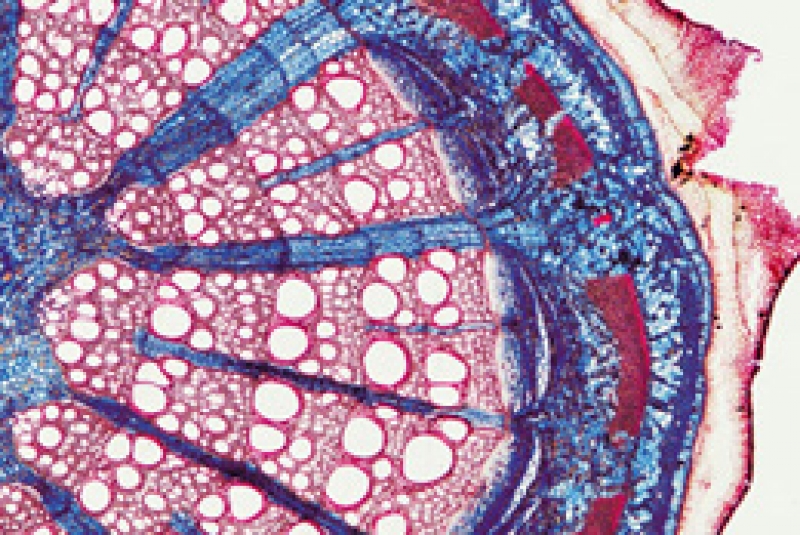 4(e). Monokotyler und dikotyler Stamm, Mais (Zea mays) und Hahnenfuß (Ranunculus), zwei Querschnitte
