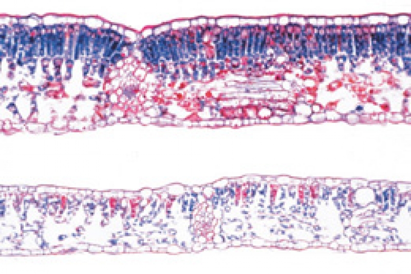 6(d). Sonnen- und Schattenblatt der Buche (Fagus), zwei Querschnitte