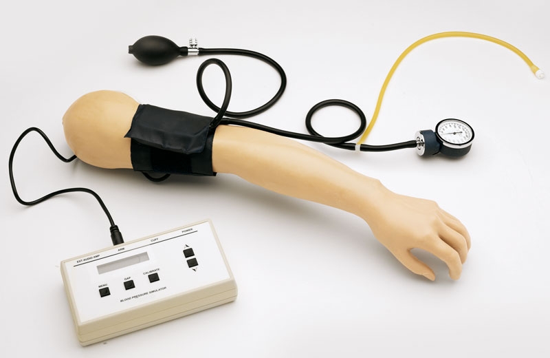 Reproduziert die fünft Korotkoff Geräusche und erlaubt es dem Ausbilder, systolische und diastolische Werte, Pulsrate, Lautstärke und die auskultatorische Lücke einzustellen.