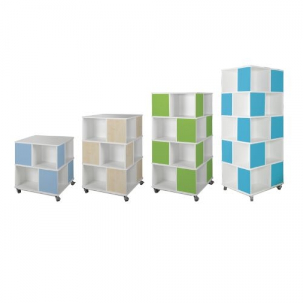 Unsere Büchertürme mit 2 bis 5 Ebenen und von 8 bis 20 offenen Fächern in Ordnerhöhe bieten genug Platz um all ihre Bücher aufzubewahren. Dank der 4 stabilen Schwerlast- Doppelrollen ist der Bücherturm mobil einsetzbar. Korpus und Blenden können farbgleich in 1 Dekor aus unserer Dekorpalette gestaltet werden.