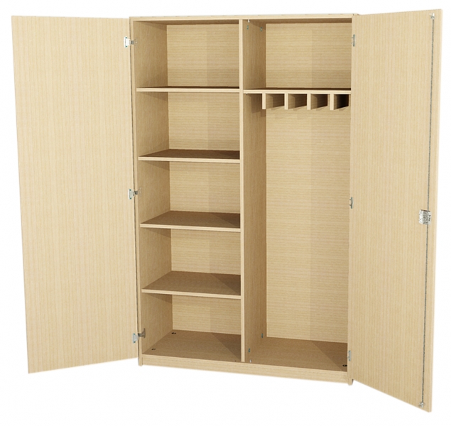 Bügelbrettschrank, BxHxT 120x190x50 cm 2 Türen, abschließbar, Dreholive, Mittelwand, links: 4 Einlegeböden rechts: 1 fester Ablageboden mit Trennstegen für Bügelbretter