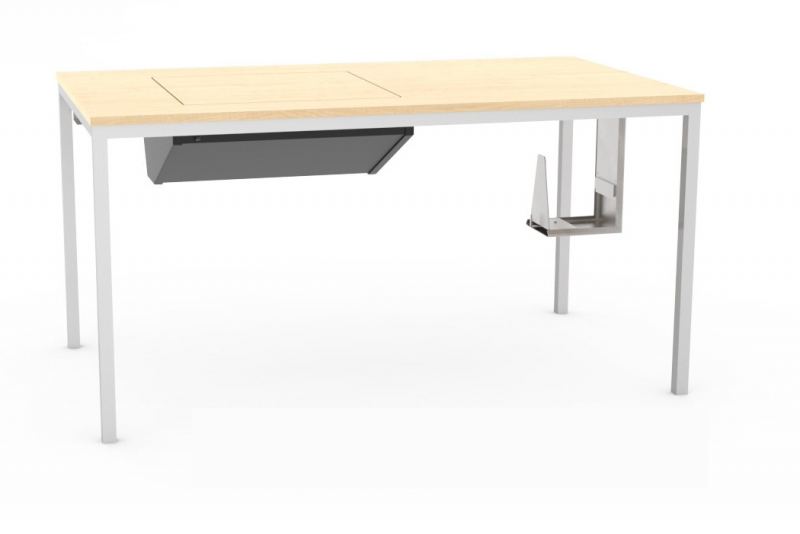 Lehrertisch mit Monitorklappe und Unterschrank rechts