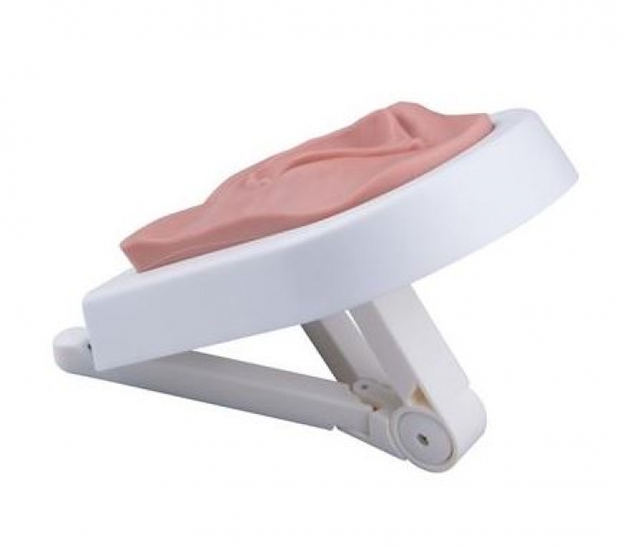 Das verwendete Material zur Simulation des Gewebes fühlt sich sehr realistisch an und ist zudem leicht sauber zu halten. Der komplette Trainer ist sehr platzsparend zu verstauen. Die einstellbare Halterung für das simulierte Gewebe steht stabil und rutschfest auf dem Tisch. Der Einsatz kann aus der Halterung genommen und dann auf dem Tisch liegend bearbeitet werden. Der preisgünstige Gewebeeinsatz ist einzeln oder im 5er Pack hier im Shop erhältlich.
