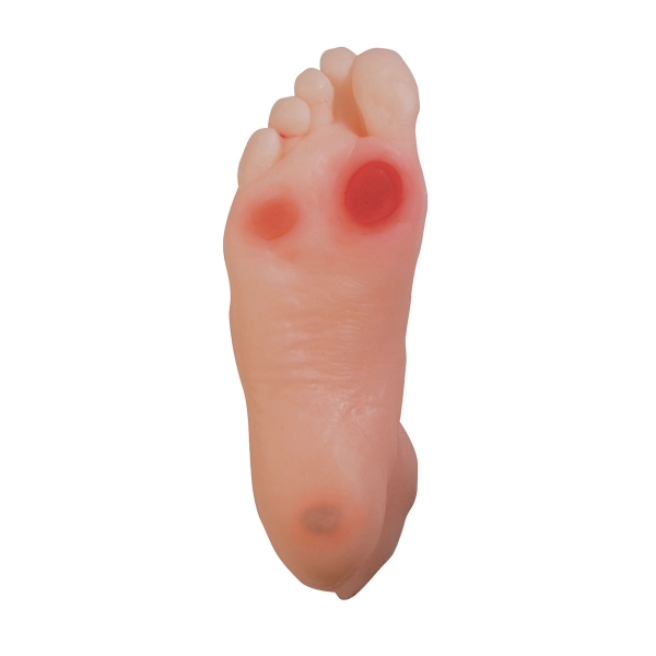 Das Modell besteht aus BIOLIKE™-Material und enthält drei Ulcera in unterschiedlichen Entwicklungsstadien sowie alle Merkmale, die mit Diabetes verbunden sind.