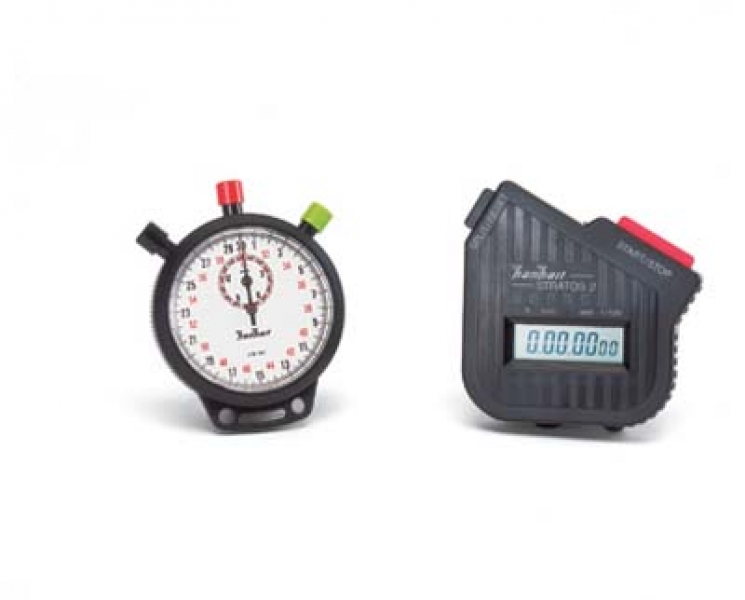 Stoppuhr mit 7- stelliger LCD- Anzeige in stabilem Kunststoffgehäuse mit Start/ Stopp- und Split/ Reset- Knopf für Start/ Stopp.