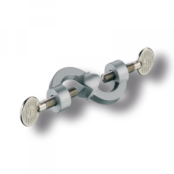 Doppelkreuzmuffe zur Verbindung von Stäben bis 20 mm Ø. Pulverbeschichteter Zinkdruckguss, 130 g.