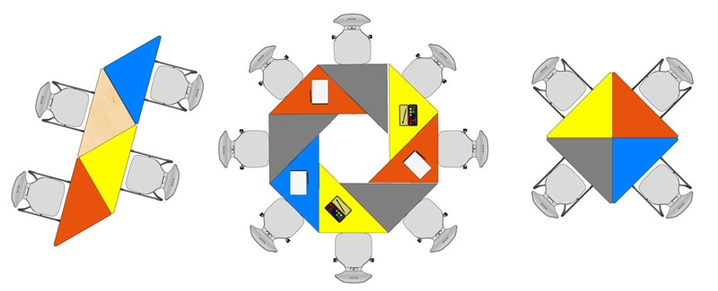 Der Pythagoras Dreiecktisch stellt Ihnen durch seine Vielzahl an Kombinationsmöglichkeiten ein völlig freies Spiel bei der Gruppenbildung zur Verfügung.