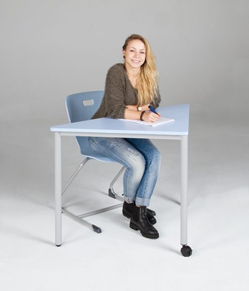 Der Dreieckstisch Modell "Pythagoras" ist in Klassenräumen bei der Gruppenarbeit schnell und flexibel einsetzbar.