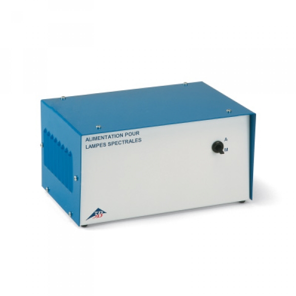 Betriebsgerät für Spektrallampen (1003537 – 1003546) einschließlich Lampengehäuse auf Stativstab. Auf der Rückseite des stabilen Metallgehäuses kann ein zweites Lampengehäuse auf Stativstab festgeklemmt und angeschlossen werden. Mit einem Umschalter auf der Vorderseite ist die rechte oder die linke Spektrallampe einschaltbar. Max. Ausgangsstrom: 1 A Lampengehäuse: 180 mm x 50 mm Ø Stativstab: 300 mm x 10 mm Ø Lampenfassung: Pico 9 Abmessungen: ca. 255x175x135 mm³ Masse: ca. 5,3 kg Lieferumfang: 1 Betriebsgerät 1 Lampengehäuse auf Stativstab mit 7-poligem Anschlusskabel.