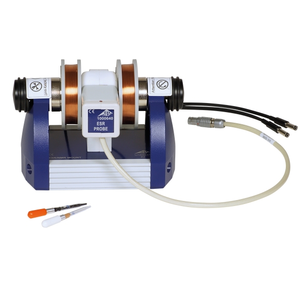 Das Modul vereint sämtliche erforderlichen Komponenten wie ESR-Messkopf, Montageringe, Montagezylinder, Basissockel, Helmholtz-Spulenpaar.