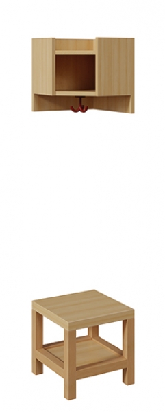 Bitte wählen Sie in dieser Liste die gewünschte Ausführungsart aus: | | Eckteil für Komplettgarderobe, Oberteil und UnterteilVersandkostenfreie Lieferung! Komplettgarderobe Eckteil 2-teilig (Innenecke 90 Grad), Oberteil mit einem Dreifachhaken, einem offenen Fach und einer Ablagefläche oben, Unterteil mit Schuhablagefach - für Krippe, Kindergarten und Hort.