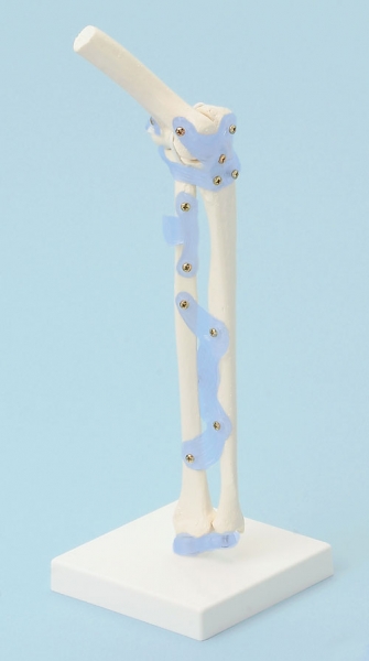 Das Modell erlaubt die Demonstration der Bewegungen im Ellenbogengelenk wie Beugung und Streckung sowie die Umwendbewegung der Unterarmknochen bei Pro- und Supination.