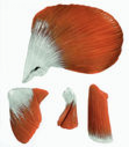 Bestehend aus den 4 großen Kaumuskeln (M. temporalis, M. masseter, M. pterygoideus medialis und lateralis) und kann an die zerlegbaren Schädelmodelle, nach Prof. Dr. Dr. med. J. W. Rohen, Anatomisches Institut der Universität Erlangen angesteckt werden.