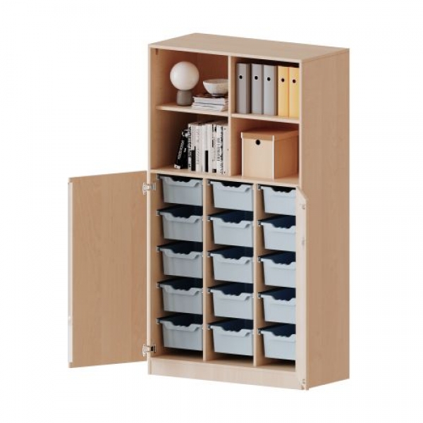 | | ErgoTray Kombi-Schrank mit 15 Boxen, 5 OrdnerhöhenVersandkostenfreie Lieferung! 3 OH unten mit Türen und 15 hohen ErgoTray Boxen, oben 2 OH Regal, mit Sockel, mit Mittelwand, B/H/T: 104,5x190x50 cm