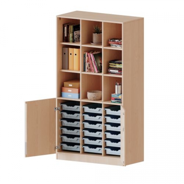 | | ErgoTray Kombi-Schrank mit 18 Boxen, 5 OrdnerhöhenVersandkostenfreie Lieferung! 2 OH unten mit Türen und 18 flachen ErgoTray Boxen, oben 3 OH Regal, mit Sockel, mit 2 Mittelwänden, B/H/T: 104,5x190x50 cm
