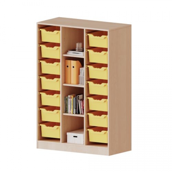 | | ErgoTray Regal, dreireihig, 4 OrdnerhöhenVersandkostenfreie Lieferung! mit Sockel, rechts und links je 7 hohe ErgoTray Boxen, 4 Fächer in der Mitte, B/H/T: 104,5x154x50 cm