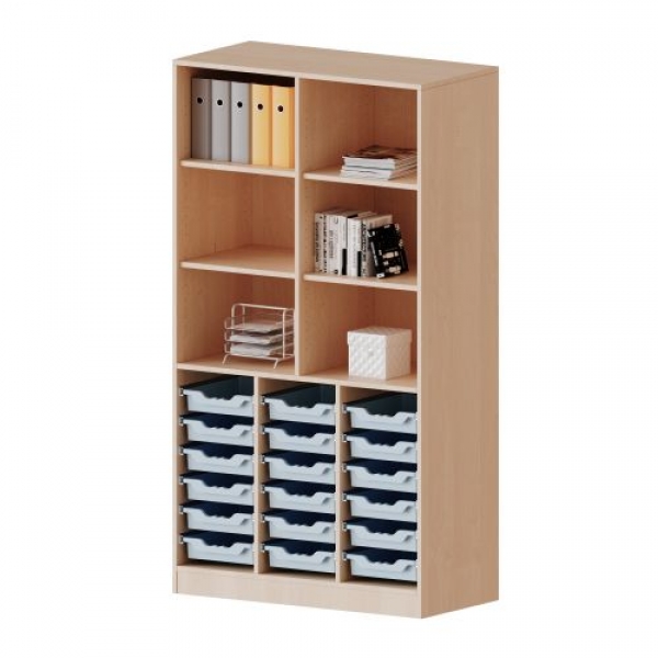 mit Sockel, unten 18 flache ErgoTray Boxen, oben 4 Einlegeböden, B/H/T: 104,5x190x40 cm