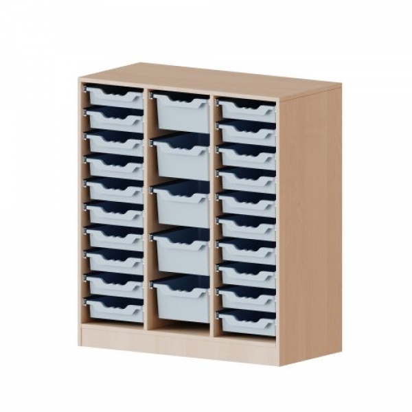 mit Möbelstellfüßen, rechts und links je 10 flache, in der Mitte 5 hohe ErgoTray Boxen, B/H/T: 104,5x118x50 cm