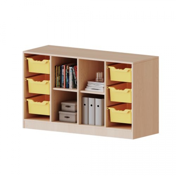 mit Möbelstellfüßen, rechts und links je 3 hohe ErgoTray Boxen, in der Mitte 4 offene Fächer, B/H/T: 138,7x82x50 cm