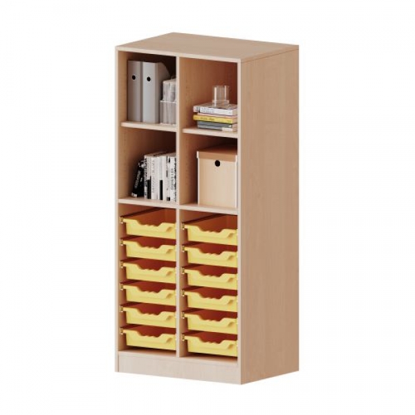 | | ErgoTray Regal, zweireihig, 4 OrdnerhöhenVersandkostenfreie Lieferung! mit Sockel, oben 4 Fächer, unten 12 flache ErgoTray Boxen, B/H/T: 70,3x154x40 cm