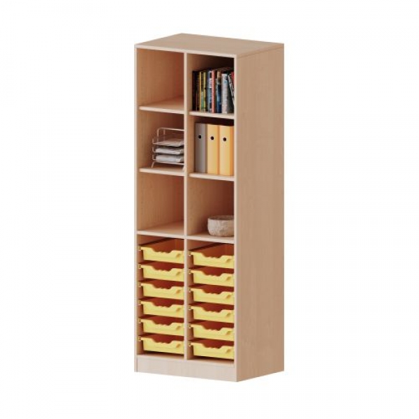 mit Sockel und Mittelwand, unten 12 flache ErgoTray Boxen, oben 4 Einlegeböden, B/H/T: 70,3x190x50 cm