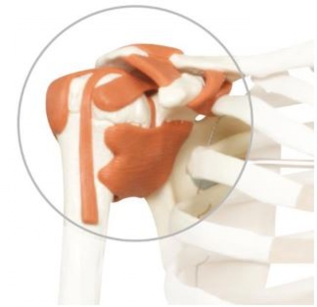 Skelett-Modell Leo bietet die Vorzüge eines hochwertigen Skelettes mit zusätzlicher Darstellung der funktional-anatomischen Zusammenhänge zwischen Knochen und Gelenkbändern.