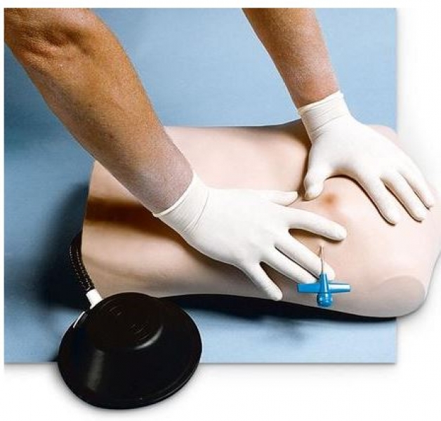 Diese von Ausbildern in der Notfallmedizin empfohlene Übungspuppe ermöglicht die Demonstration der äußerst präzisen Maßnahmen zur erfolgreichen Versorgung von Thoraxverletzungen, bei denen Atmung und Durchblutung des Opfers durch Lungenkollaps beeinträchtigt sind.