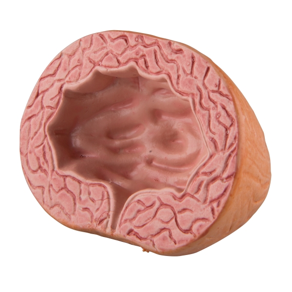 Dieser Torso mit einer vom Kleinhirn bis zum Steißbein geöffneten Nacken- und Rückenpartie ausgestattet. Wirbel, Bandscheiben, Rückenmark, Spinalnerven, Vertebralarterien und vieles mehr sind detailliert herausgearbeitet.