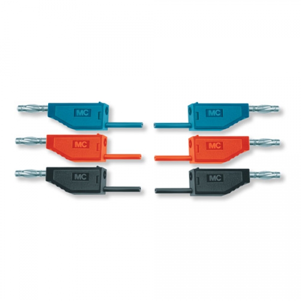 Für Stromkreise mit Kleinspannungen und hohen Strömen, Kupferleitung in hochflexiblem PVC; an beiden Enden mit Lamellenstecker und einer vollisolierten axialen Buchse zum Anschluss weiterer Experimentierkabel.