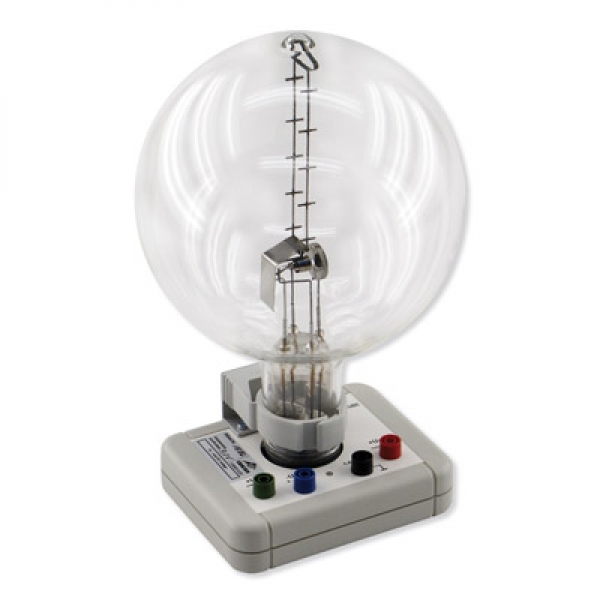Hochevakuierte Elektronenröhre mit fokussierender Elektronenkanone und gegen die Strahlachse geneigtem Leuchtschirm, auf dem der Strahlverlauf zur Untersuchung von Elektronenstrahlen in elektrischen und magnetischen Feldern sichtbar gemacht wird.