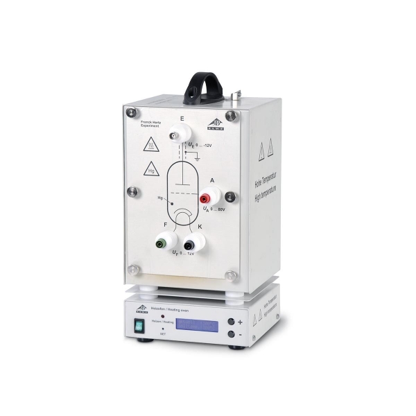 Um den erforderlichen Quecksilberdampfdruck für eine ausreichende Stoßwahrscheinlichkeit der Elektronen mit den Quecksilberatomen zu erreichen, muss die Elektronenröhre im Ofen geheizt werden. Die Franck-Hertz-Röhre ist so positioniert, dass die ganze Röhre einschließlich der Anschlussdrähte auf eine konstante, homogene Temperatur kommt. Dies ist erforderlich, weil sich die Dampfdichte des Quecksilbers stets nach der kältesten Stelle der Röhre einstellt. Der elektrischer Heizofen mit stetiger Temperaturregelung ist mit einer digitalen Temperaturanzeige von Soll- und Ist-Temperatur versehen. Die Temperaturmessung und -regelung erfolgt über einen integrierten Mikrokontroller und Pt100-Messfühler.