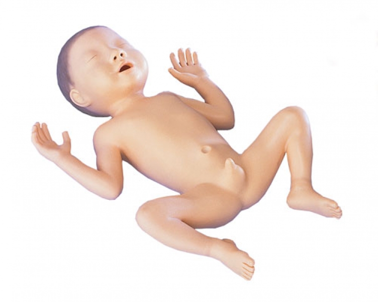 30 Wochen alter Junge. Das ideale Modell zur Übung der Frühgeborenen-Versorgung. Entwickelt für das Training der Pflege im Inkubator. Für Wasch-, Reinigungs- und Ernährungsübung, auch für Absaugen und andere Geräteanwendungen geeignet. Die vordere Fontanelle ist tastbar.