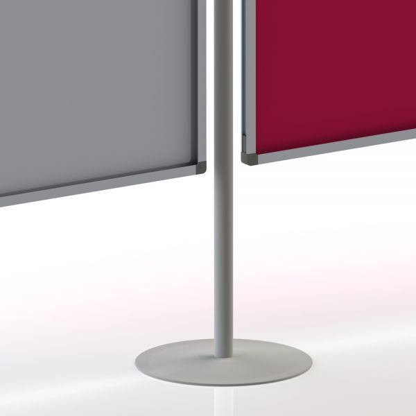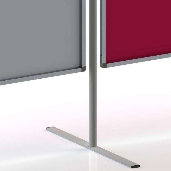 1 Stück Rundrohrstativ mit T-Fuß, für alle Tafelgrößen geeignet. Inklusive 2 vormontierten Einhängeringen pro Stativ. Standardmäßig wird das Stativ in lichtgrau (RAL 7035) geliefert.