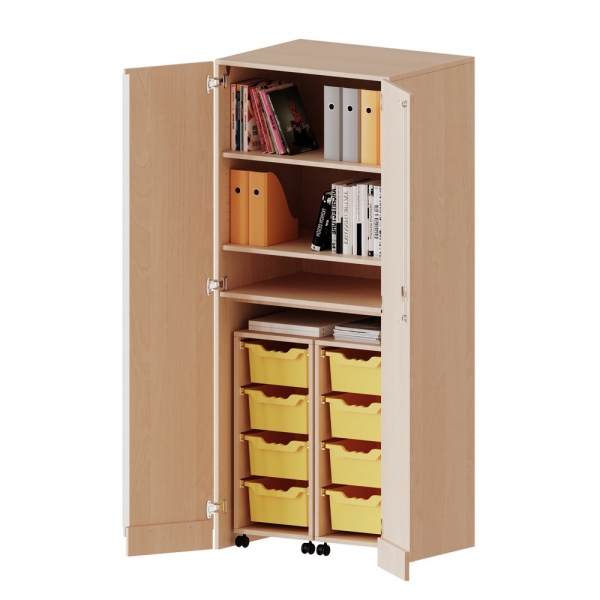Unsere Garagenschränke bieten wir in verschiedenen Varianten an. Die Schränke haben keine Sockel - innen stehen praktische Rollcontainer oder Trockenwagen, die Sie bei Bedarf einfach aus dem Schrank herausrollen und da verwenden können, wo Sie diese gerade benötigen. Nach dem Unterricht einfach wieder in den Schrank schiebn und im Nu ist alles aufgeräumt.