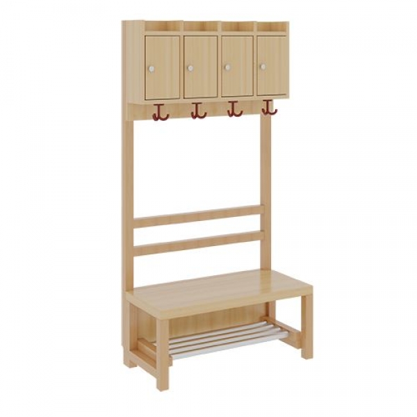 Bitte beachten: Komplettgarderoben mit Stollenrahmen / Stütze und fest montierten Oberteil müssen ab eine Sitzhöhe von 42cm / Gesamthöhe 158 cm an der Wand fixiert oder mit Seitenwangen versehen werden.